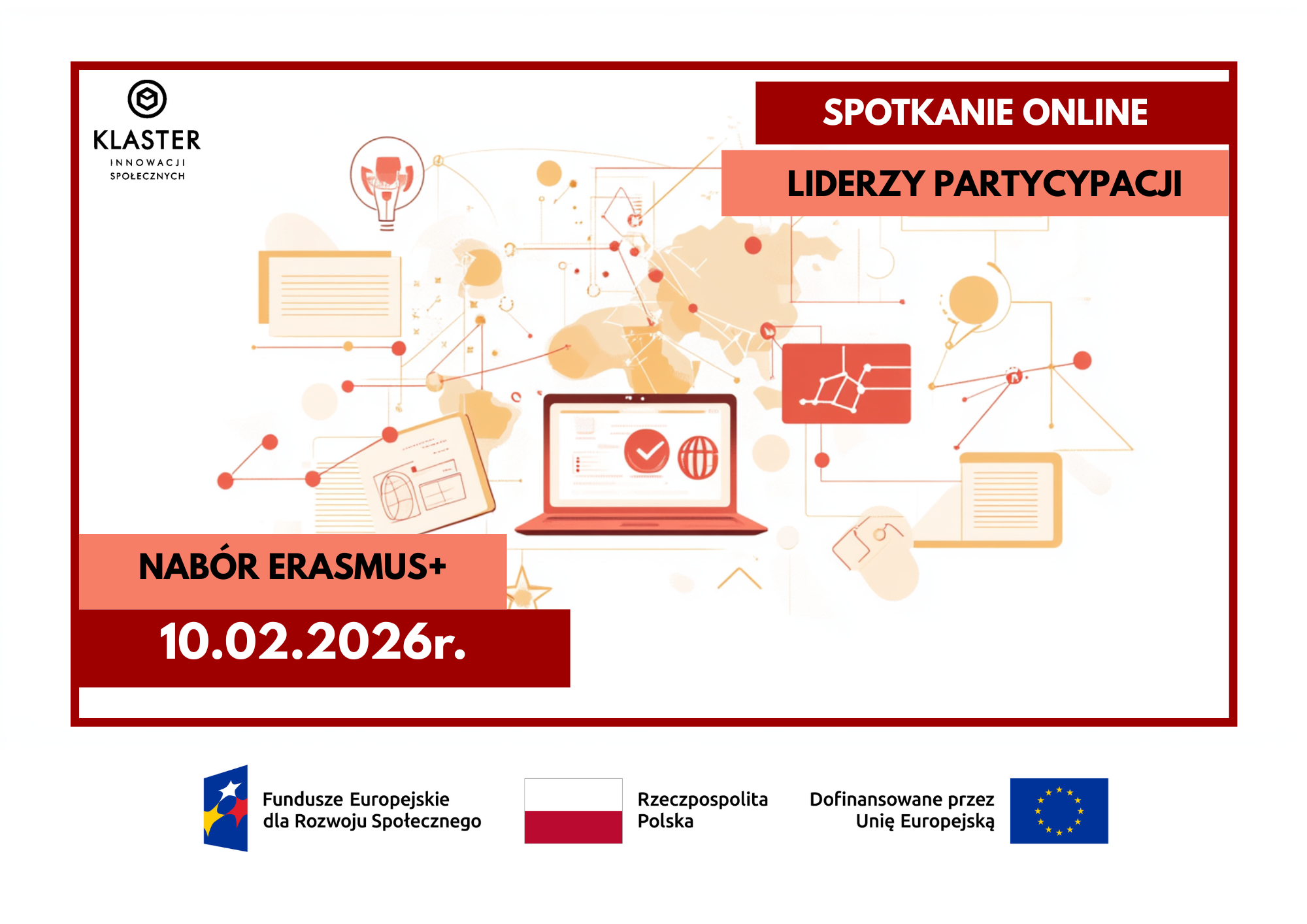 💻 Spotkanie online 🕐 10.02.2026 r. (wtorek), godz. 16:00 👥 Tylko dla uczestników projektu 🎯 Praktyczne wskazówki do wniosku Zbliża się nabór w programie Erasmus+. Jeśli chcesz podejść do niego spokojnie i z planem – zapraszamy na spotkanie online dla uczestników projektu „Liderzy Partycypacji w obszarze edukacji i kształcenia”. Podczas spotkania pokażemy, jak przygotować dobry wniosek i na co zwrócić uwagę, żeby nie tracić punktów na typowych błędach. Dostaniesz też konkretne podpowiedzi, gdzie szukać partnerów i jak do nich pisać, żeby realnie zbudować współpracę.Najważniejsze informacje